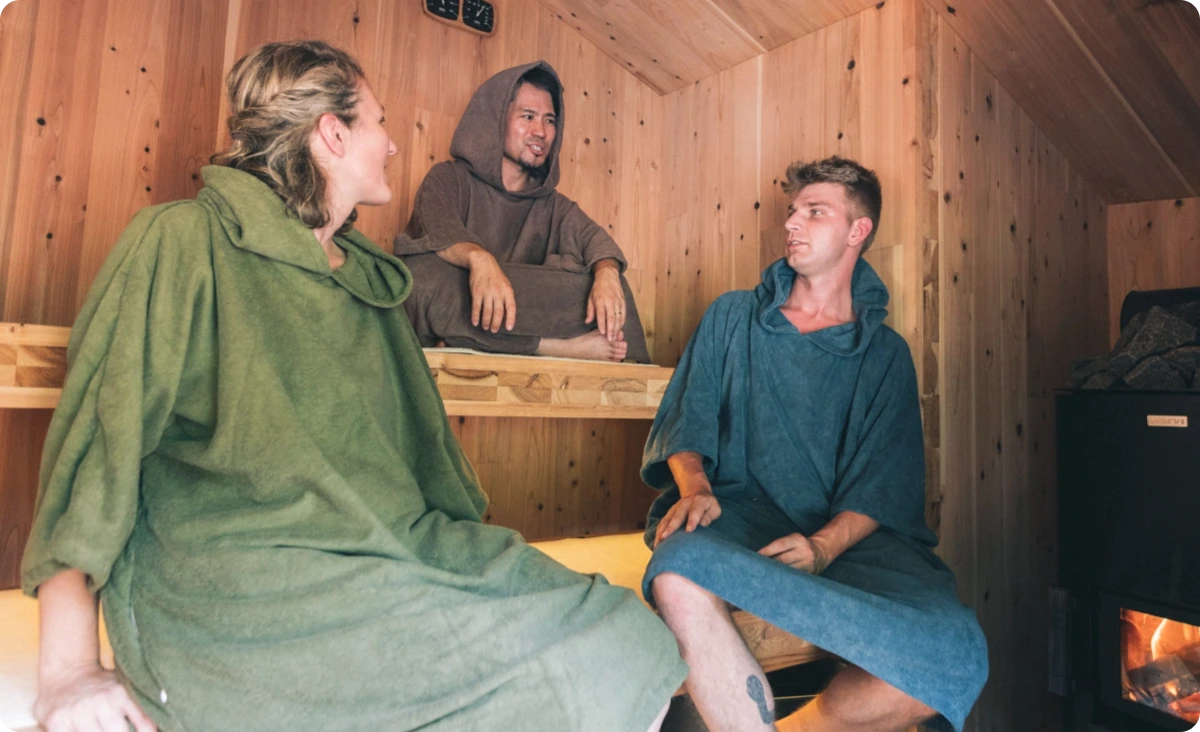 Gathering around the bonfire or sauna,