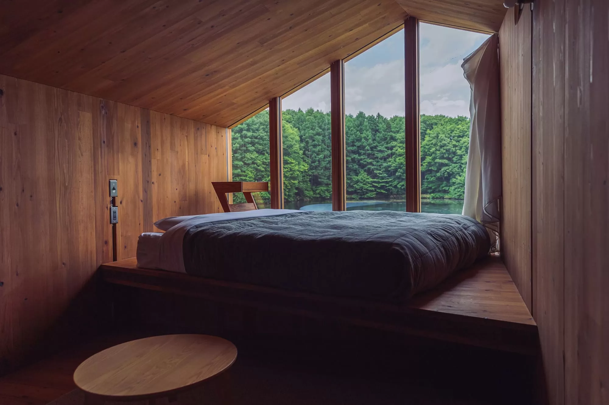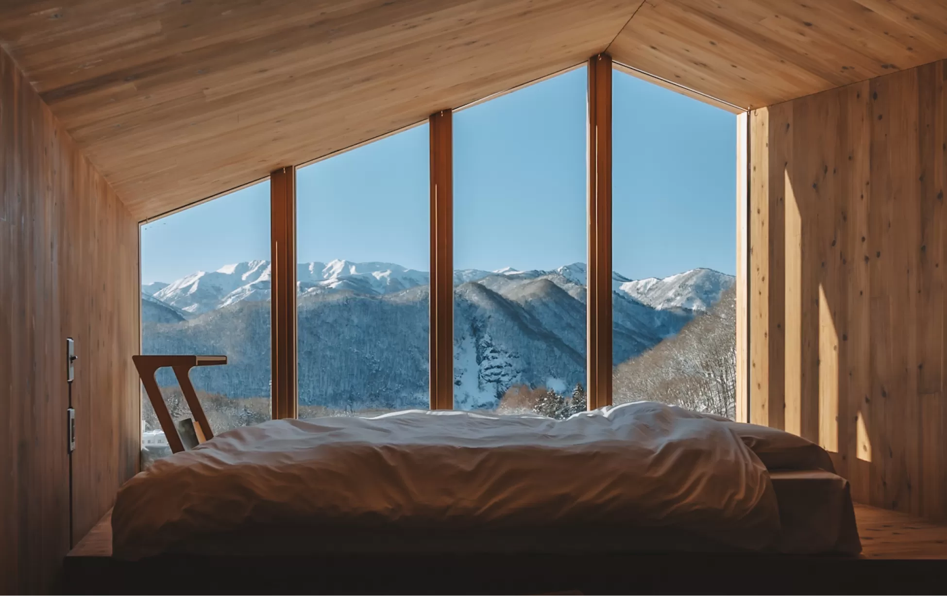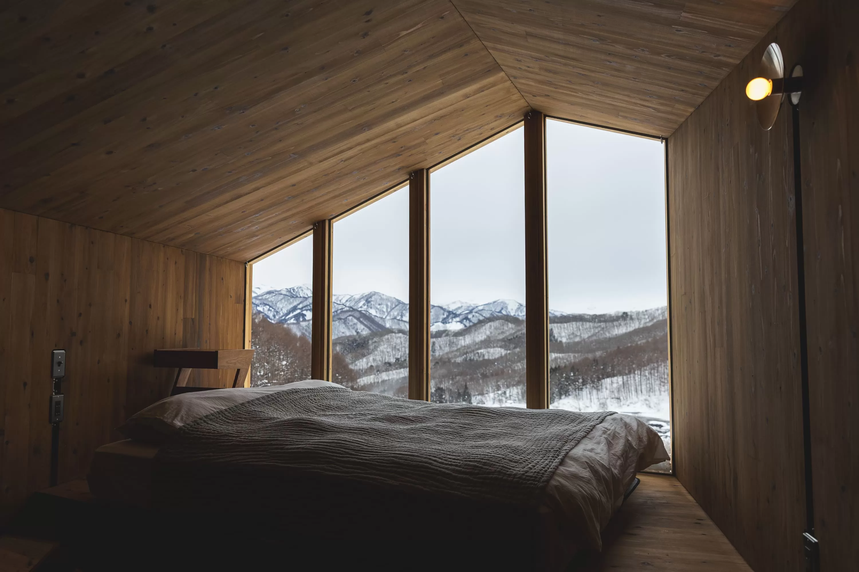 Slit windows in the walls allow soft natural light to gently flood into the rooms.