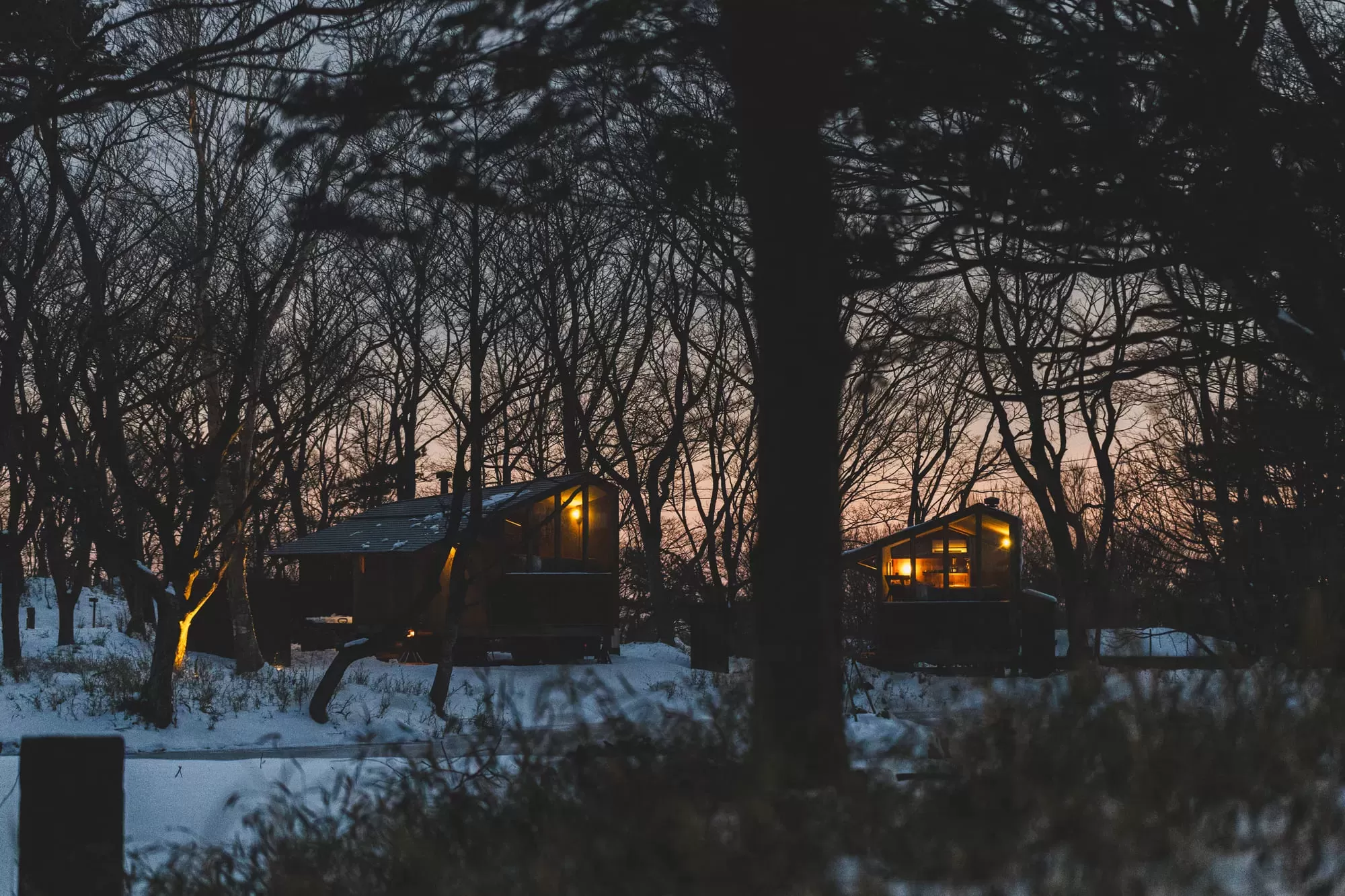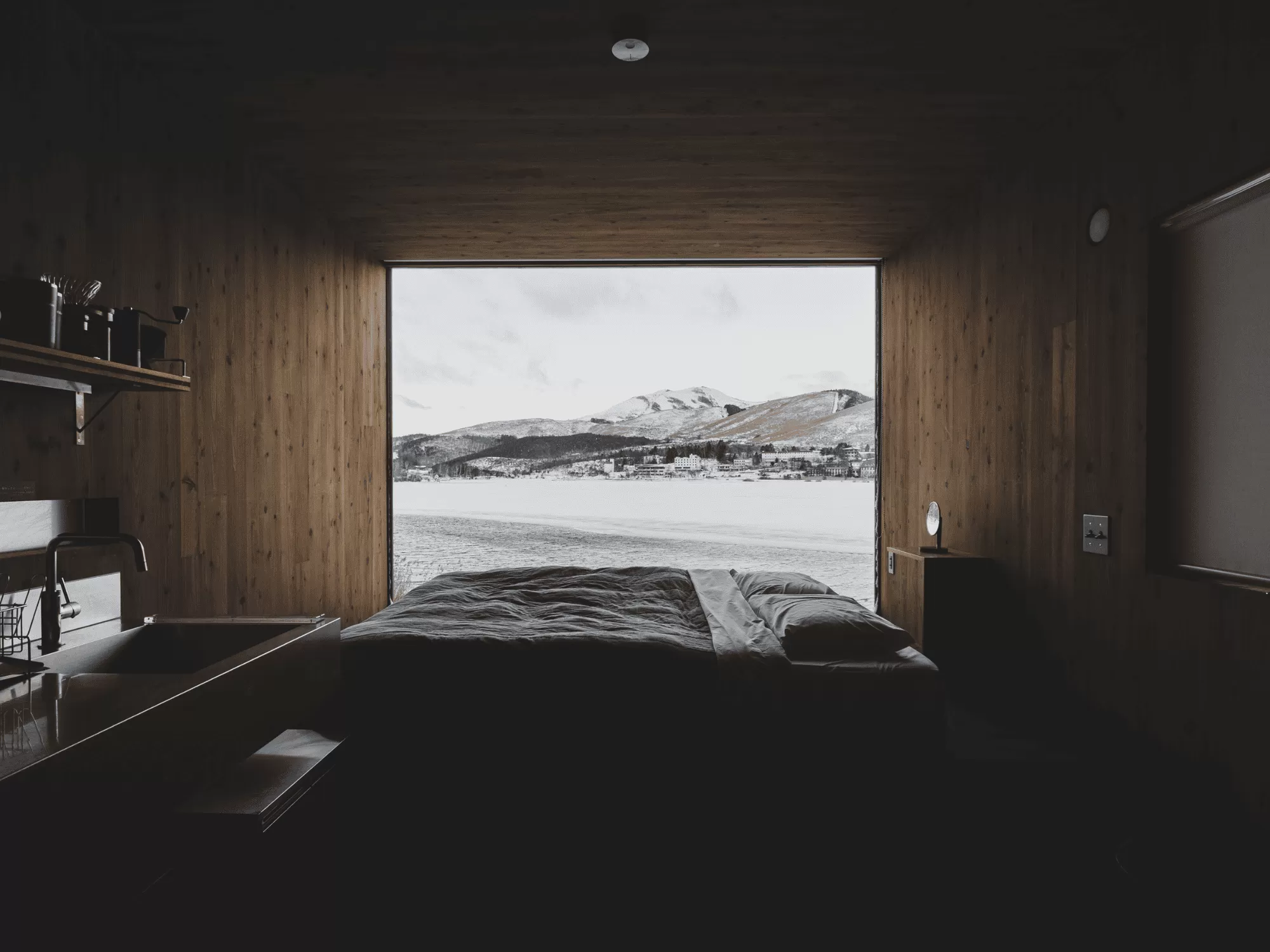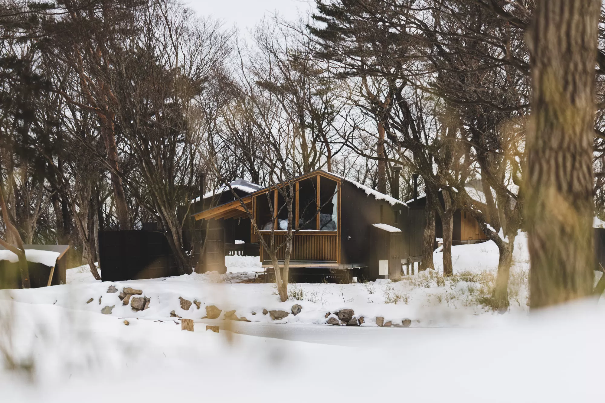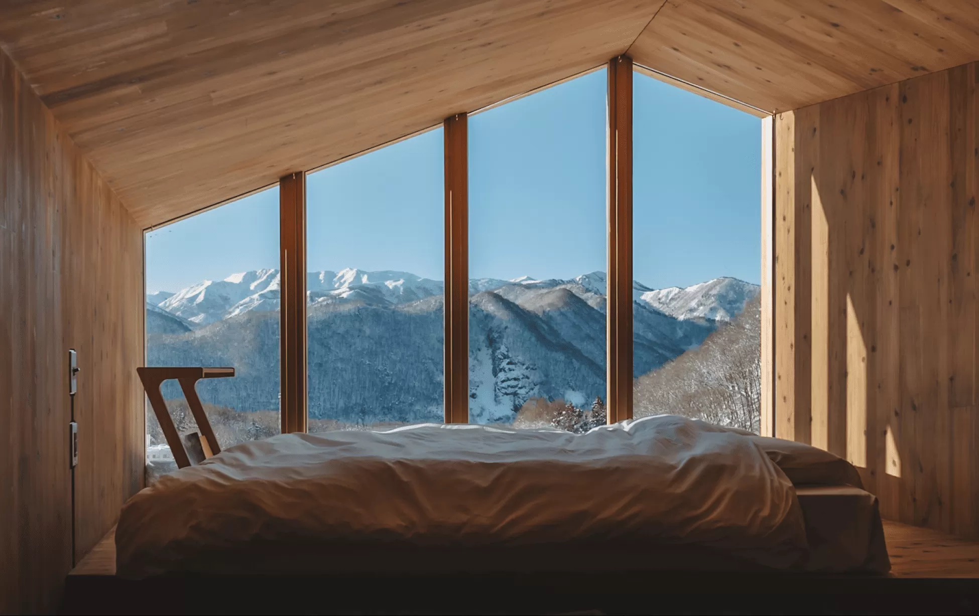 Slit windows in the walls allow soft natural light to gently flood into the rooms.