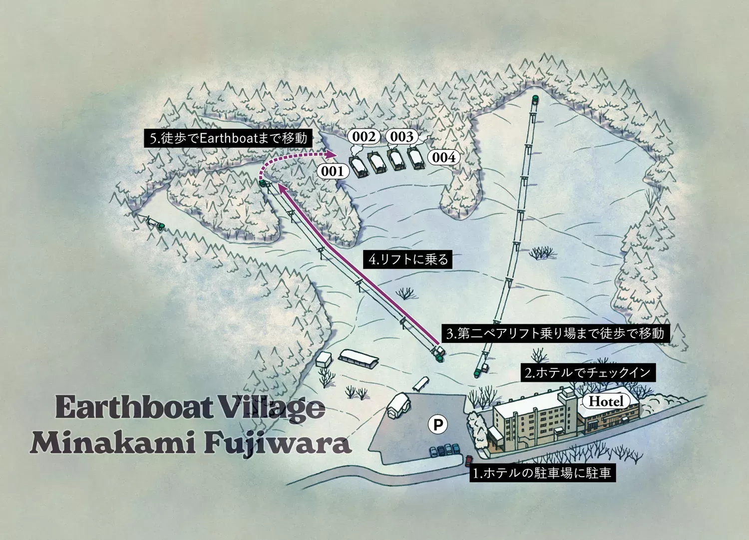 During the winter season, guests will travel to the Earthboat area via the ski lift.