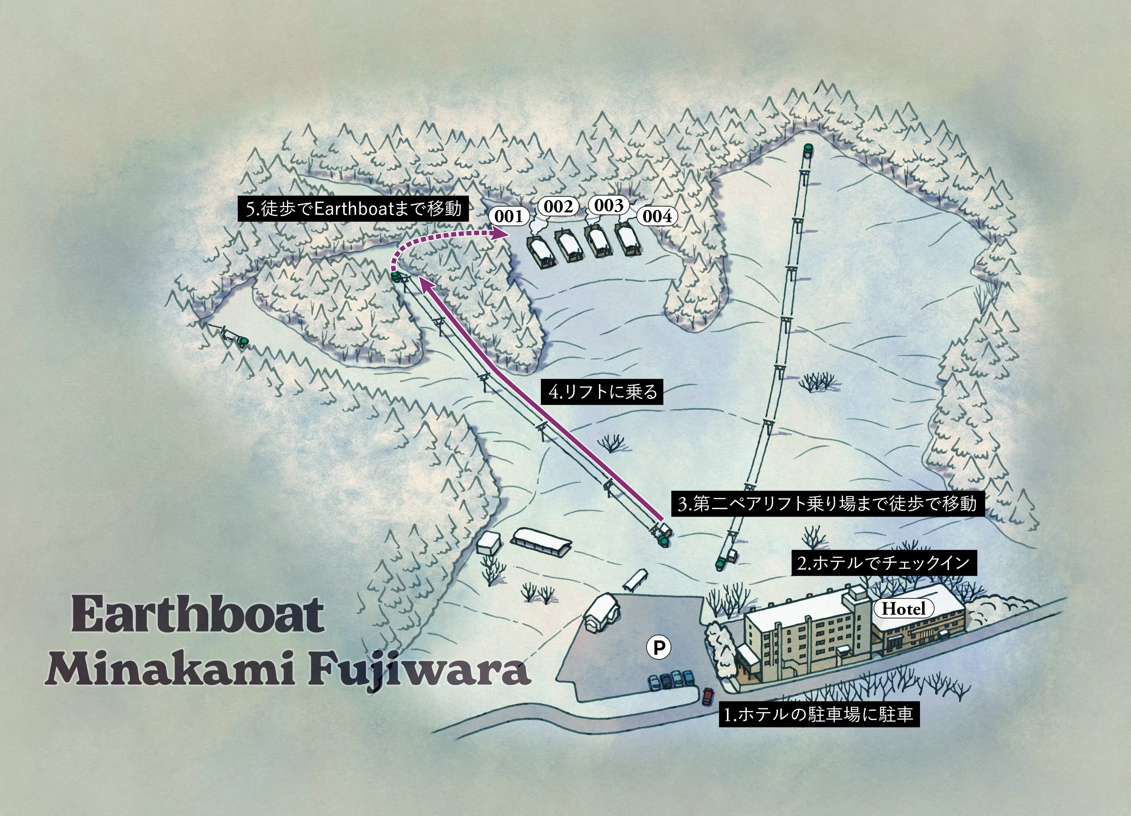 During the winter season, guests will access the Earthboat area via the ski resort lift.