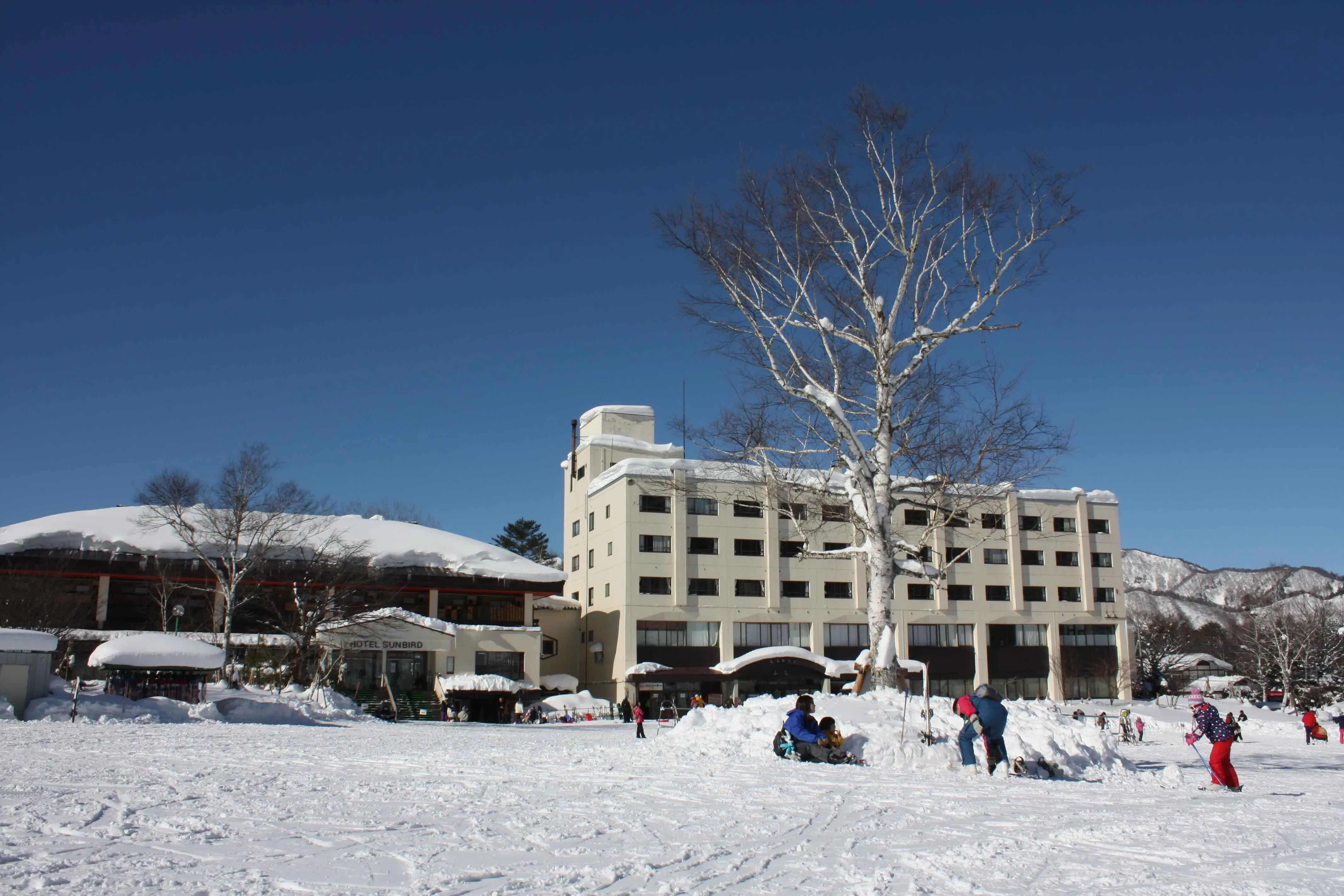 A free shuttle bus is available from Minakami Station and Jōmō-Kōgen Station to Hotel Sunbird (Earthboat).