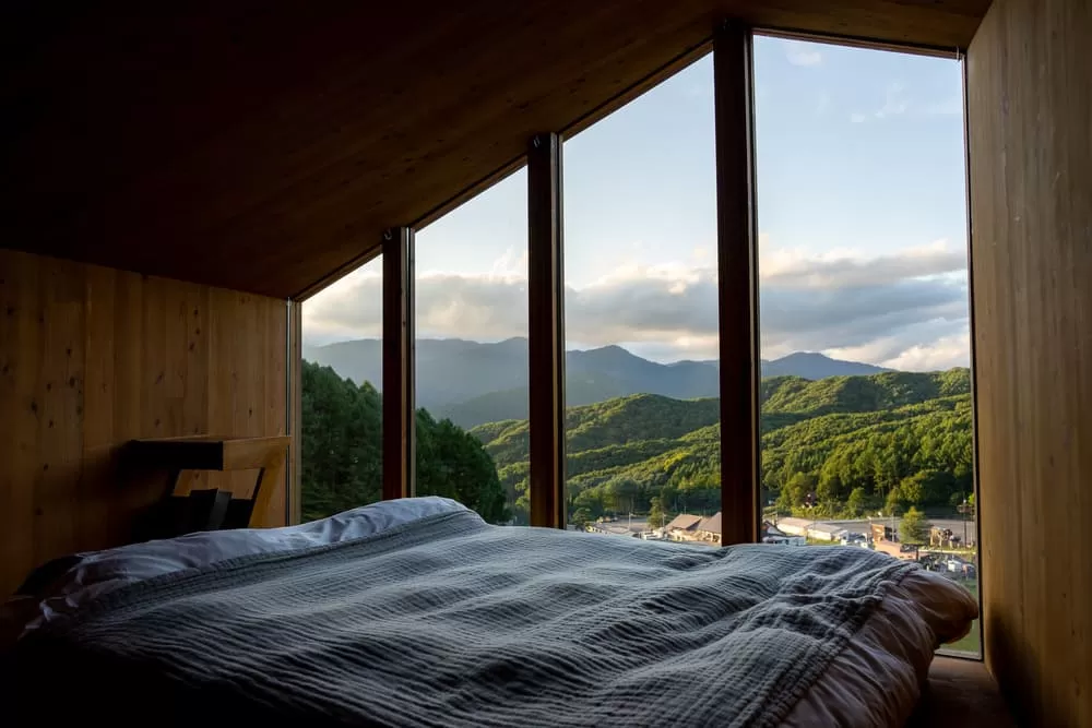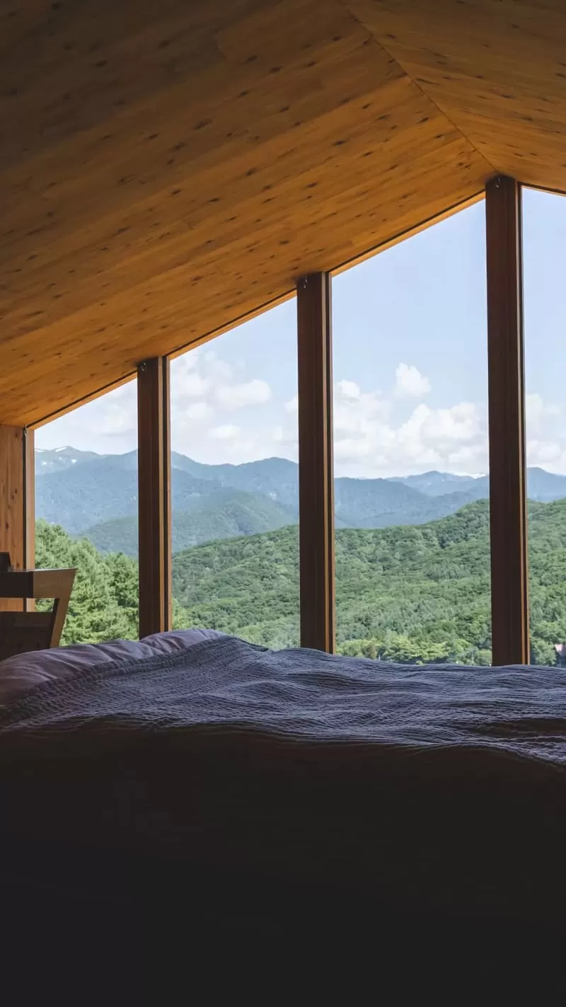 Equipped with a queen-sized bed to soothe your tired body after a day of skiing. From the distinctive windows, you can relax while enjoying views of the ski slopes and surrounding mountains.