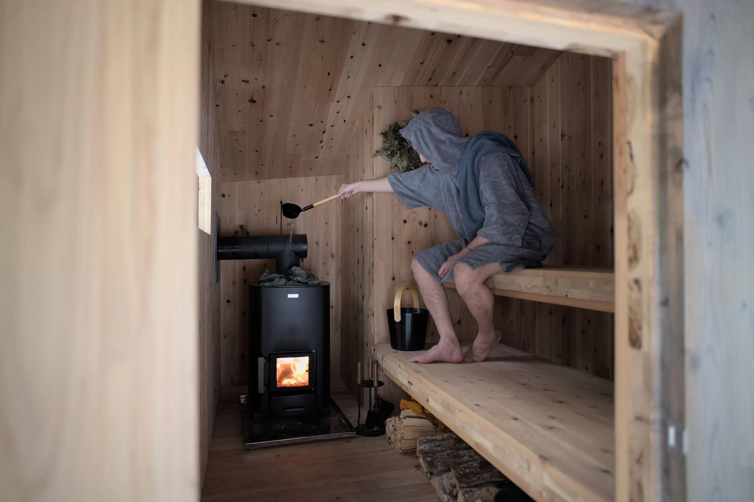 The silhouette is reminiscent of a mountain hut.
